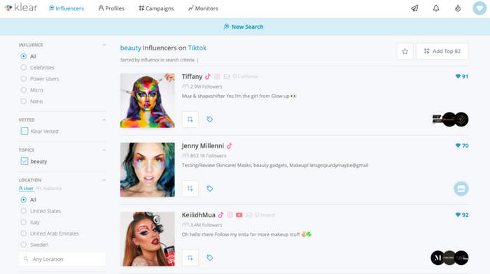 Klearでは、TikTokのインフルエンサーを発見・審査し、簡単にコラボレーションを行い、データに基づいた指標を使ってTikTokキャンペーンの効果を測定することができるようになりました。