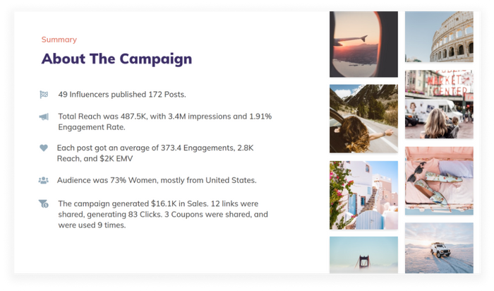 Klearは、すべてのキャンペーンデータとその効果を、わかりやすいPDFのキャンペーンレポートに集約しています。