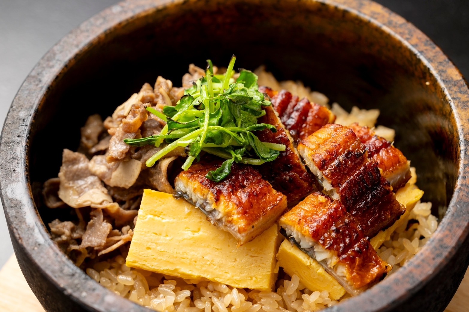 和食の技法によって、より柔らかく仕上げた「うなとろっ」食感の『せいろまむし御膳』をはじめ、香ばしく焼き上げた中にも柔らかさを感じられる『ひつまむし御膳』、パフォーマンスも楽しいニュースタイルな鰻の食べ方を提案する『鰻と牛肉の石焼御膳』と、三種三様の鰻料理をお楽しみいただけます。
