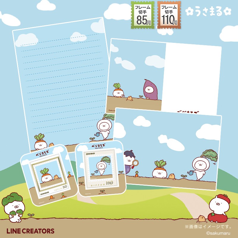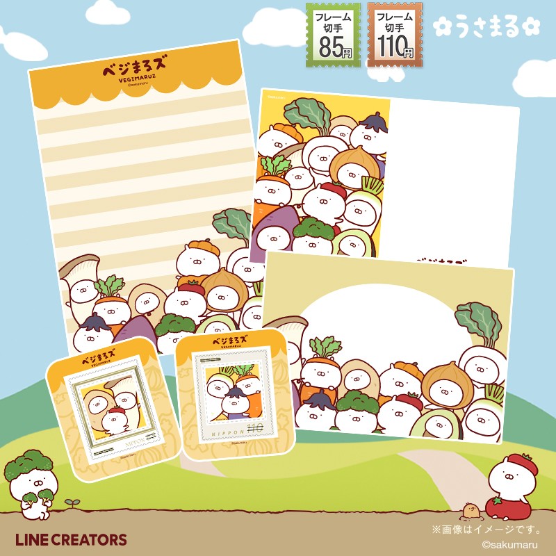 うさまるの人気デザイン『ベジまるズ』によるフレーム切手が登場!