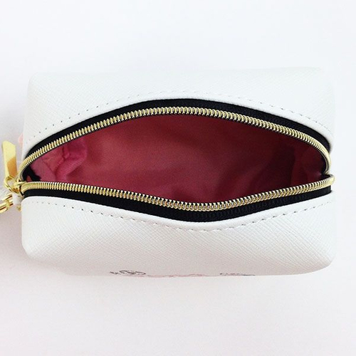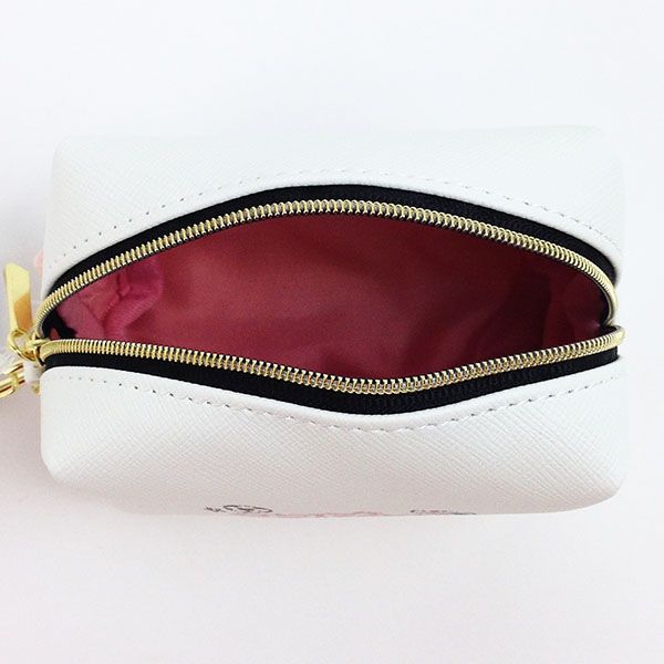 マチもたっぷりあるので、安心の容量です。コスメや小物、お菓子などいろいろな物が入れられちゃいますね♪ピンクのストラップもキュートです。
