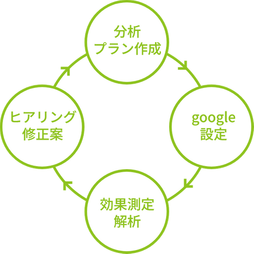 現状のWEBサイトのアクセス解析と広告解析をもとに園の現状把握から導き出した広告運用を少額から始められるのも利点です。