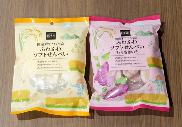 「国産米でつくったふわふわソフトせんべい むらさきいも」298円(税込321.84円)