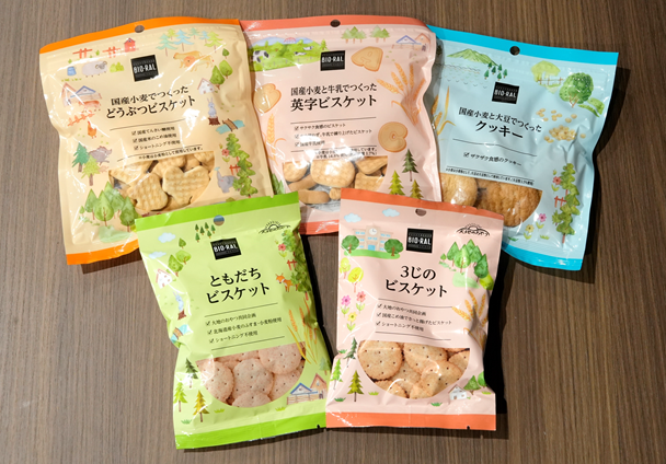 当社が運営しているナチュラルスーパーマーケット「ビオラル」は、多くの子育て中のお客様にご来店いただいています。その中で、「子どもの口に入るものは、とことんこだわりたい」「おやつは安心できるものをあげたい」などといったお声が寄せられています。そういったニーズにお応えするべく、食品添加物に配慮し国産素材や優しい味わいにとことんこだわったお菓子15種類を新発売いたしました。定番のボーロやソフトせんべい、ビスケットやカルシウムたっぷりな小魚とアーモンドなどを展開しております。