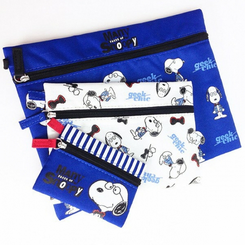 男女問わず使いやすそうな、ブルーのポーチだってありますよ。メガネをかけたインテリスヌーピーです!