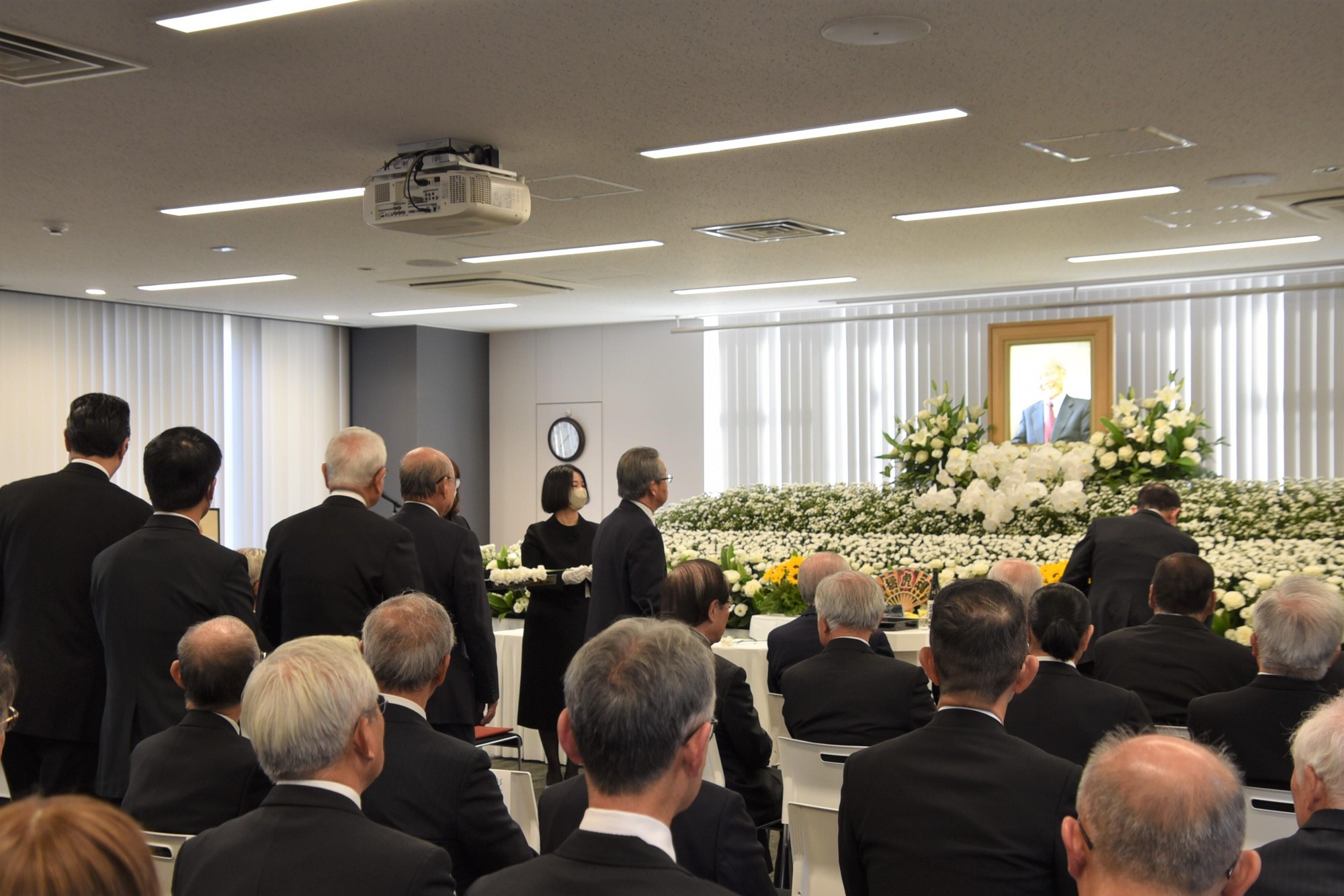 初めに、参列者が黙祷を捧げた後、立花貞司理事長が追悼の辞を述べ、ナゴヤドーム前キャンパス開設の実現などに向けてリーダーシップを発揮した理事長時代の功績を紹介。そのうえで「名城を思う深いお気持ちを受け継ぎ、社会から課せられた人材育成の責務を果たすべく、教職員一丸となって歩んでいきます」と遺影に向けて誓いました。