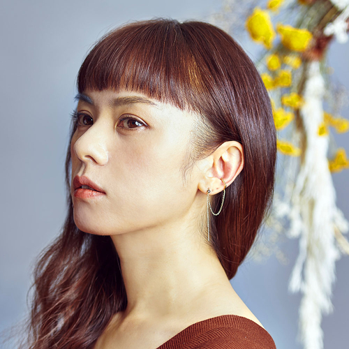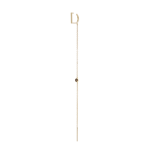 シャープなIラインの印象にこだわったイヤーカフにチェーンをセット。イヤーカフから繋がるチェーンとストーンが流れるように耳元を輝かせるデザインです。