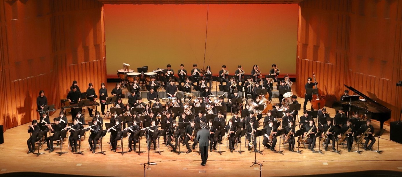 海外においても積極的に活動しており、音楽のオリンピックとも称される「世界音楽コンテスト(WMC)」にオランダのケルクラードで出場。平成9年(1997年)には「ファーストディヴィジョン」、平成13年(2001年)には最高グレードである「コンサートディヴィジョン」で、いずれも金メダルを受賞しました。また、平成28年(2016年)には「第7回韓国国際吹奏楽祭」に日本代表バンドとして招聘されるなど、国際的な舞台でも高い評価を受けています。さらに、「ブラスエキスポ2025」や「いのち輝く吹奏楽」など、万博関連イベントにも出演し、マーチングなどの多彩なスタイルでの演奏活動も積極的に行っています。現在、約100人の部員が在籍し、日々練習と演奏活動に励んでいます。