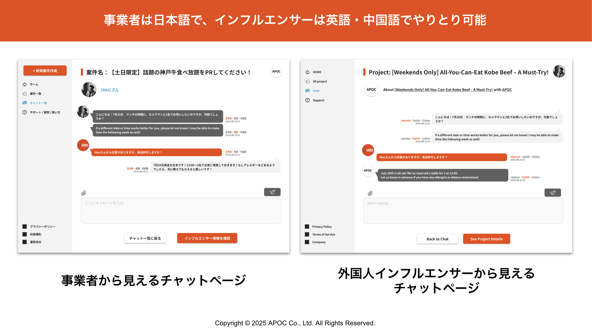 (1) インフルエンサーとのチャットを自動翻訳(日本語・英語・中国語対応)