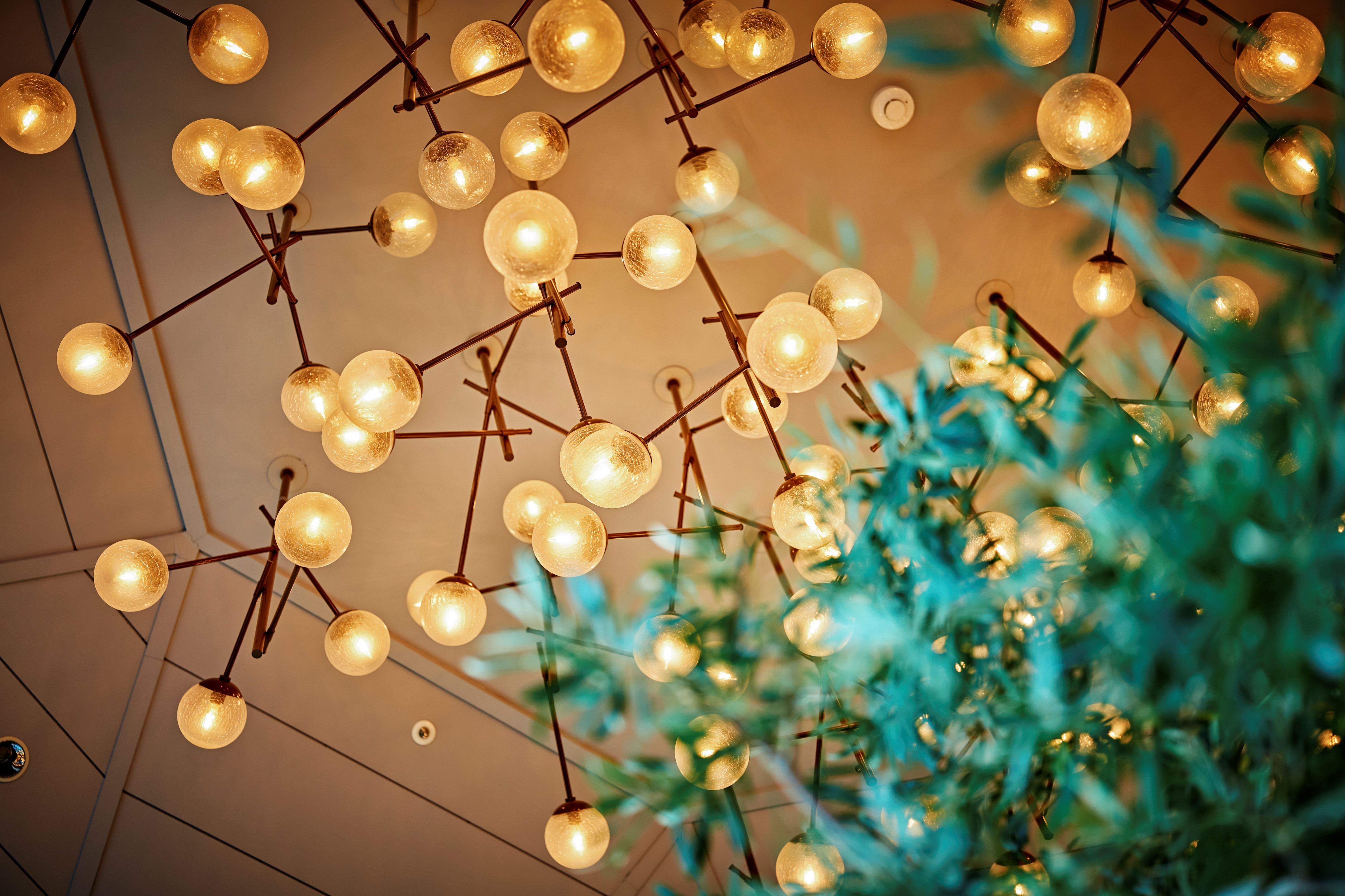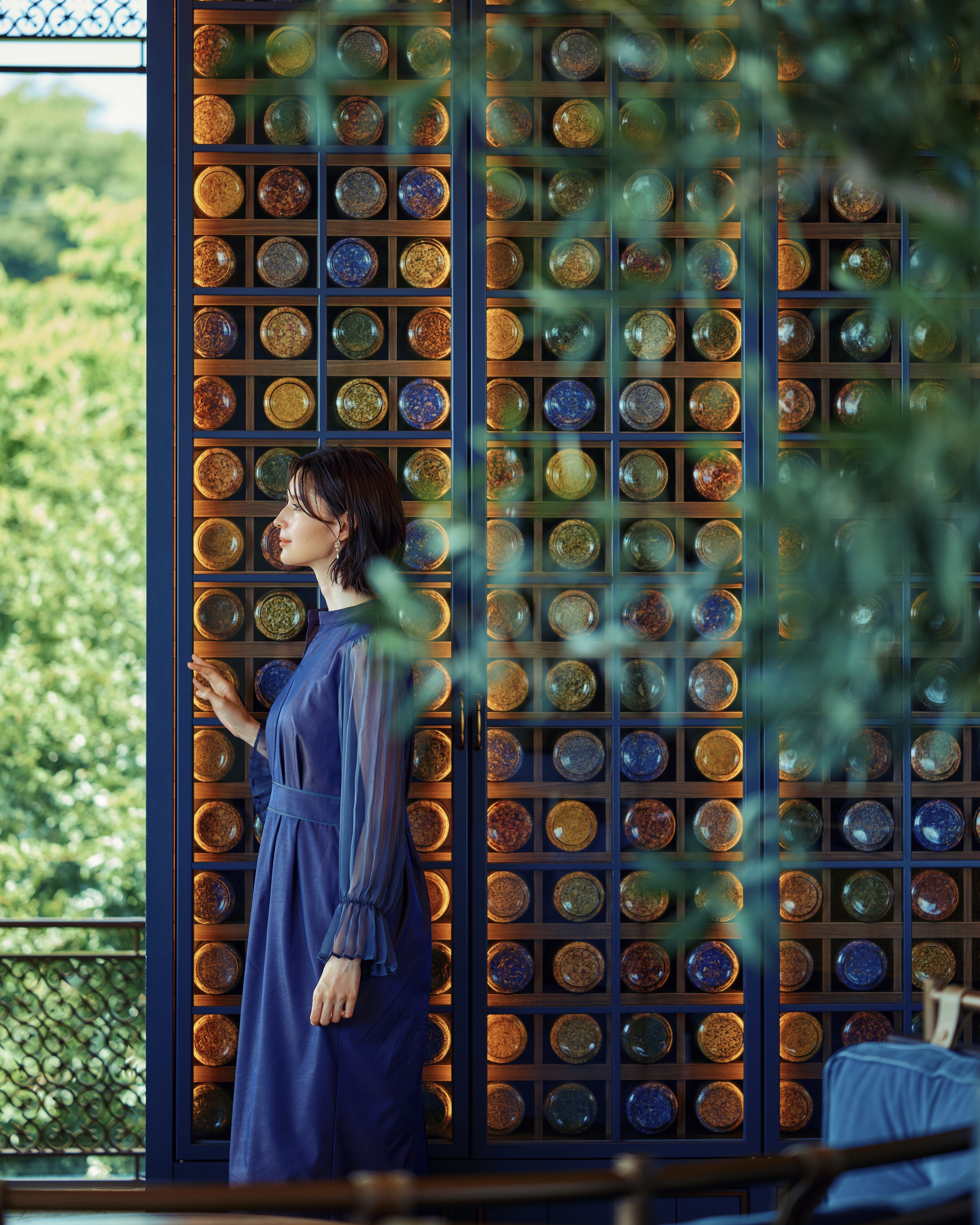 ドライハーブをモチーフにしたシャンデリア、ヨーロッパの伝統美ロートアイアン、園内で収穫したハーブをガラス瓶に収めレイアウトしたハーブセラーなどゆったりとお寛ぎいただける空間です。