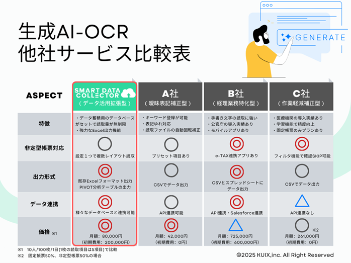 株式会社KUIX(本社:東京都品川区、代表取締役社長:小竹 三郎、以下「当社」)が展開するExcelに特化したWEBデータベースサービス「SMART DATA COLLECTOR」(以下「スマコレ」)にAI-OCR機能(β版)をリリースしました。