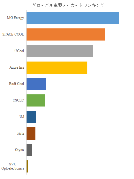 LP Informationのトップ企業研究センターによると、パッシブ放射冷却材料の世界的な主要製造業者として、MG Energy、SPACE COOL、i2Cool、Azure Era、Radi-Cool、CSCEC、3M、Pirta、Cryox、SVG Optoelectronicsが挙げられる。2025年にトップ5企業が売上ベースで約75.0%の市場シェア、トップ10企業が約85.0%の市場シェアを持つとされ、競争構造は上位集中型である。上位集中市場では、製品性能の優劣だけでなく、評価方法の提示力、採用側への技術説明の一貫性、用途別の処方提案力が競争力として働きやすい。加えて、上位企業の採用実績がそのまま“安心材料”として機能し、基準化された仕様に沿う供給体制が優位になりやすい。結果として市場は、参入プレイヤーが増えるほど、逆に「誰の材料が標準の言語で語れるか」という観点で集約が進む性格を持つのである。