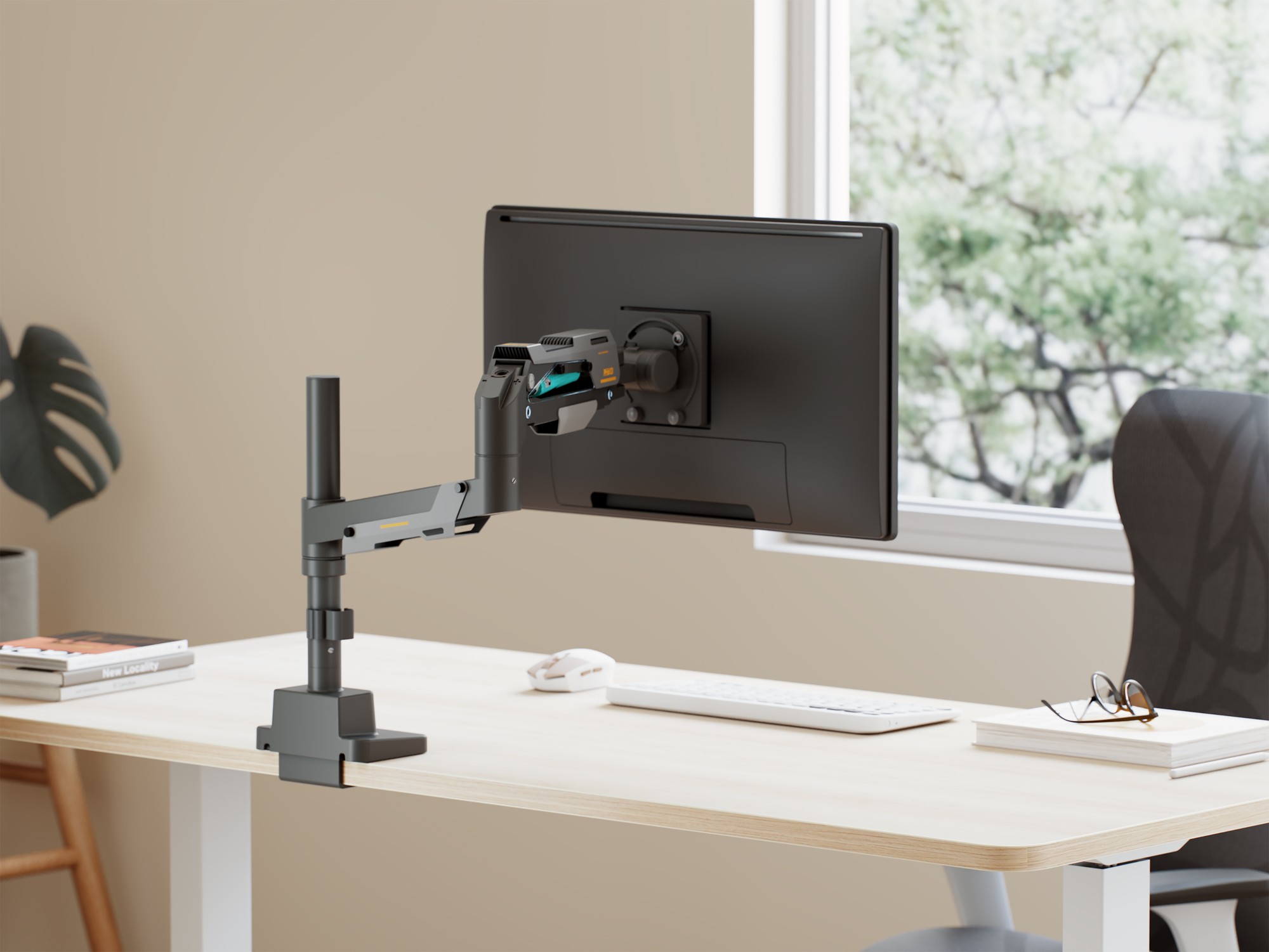 ■ 便利なクイックリリースVESAプレ―ト採用、ガススプリング式モニターアーム