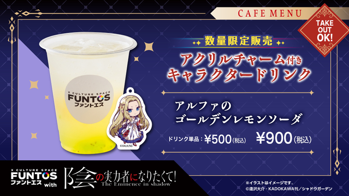 期間中(9/20~10/24)、アクリルチャーム付きドリンク900円(税込)、ドリンク単品500円(税込)にて提供いたします。