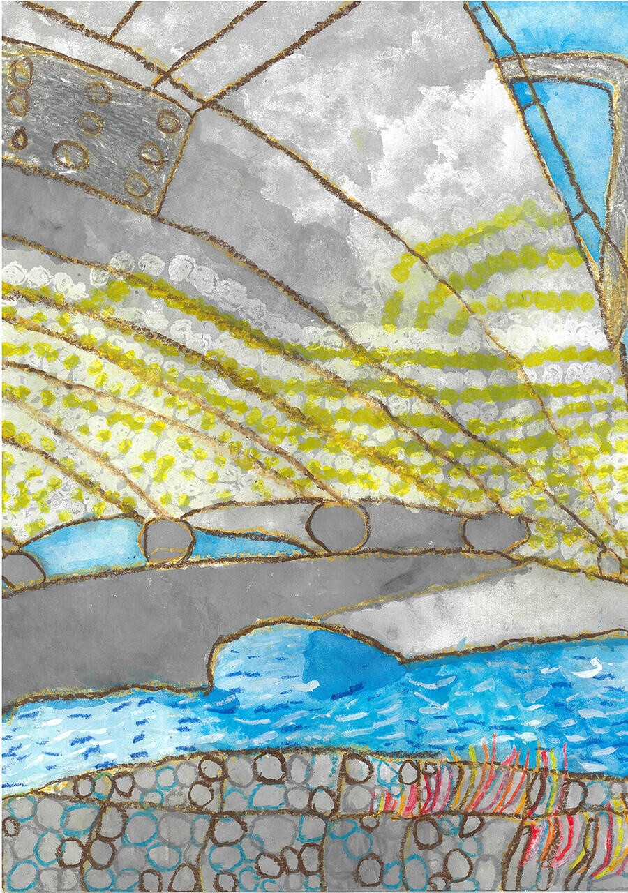 ぼくが川を歩いていたら川のもようがはんしゃしてはしにうつっていたのがおもしろかったのでかきました。