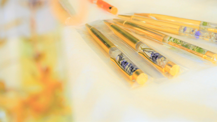 8年前から鳥取県鹿野町のいんしゅう鹿野まちづくり協議会や住民の皆さまと共に、耕作放棄地を果樹の里山にデザインする活動を展開しています。その一つとしてフットパスをして採集した草花を入れたハーバリウムを作成し、同町のイベントと大学内で販売し大変好評でした。売上金は全て鳥取市の生物多様性の保全のために鳥取市に寄付し、鳥取市長から感謝状をいただきました