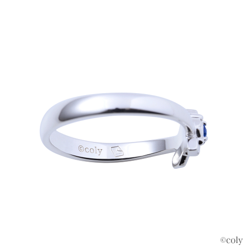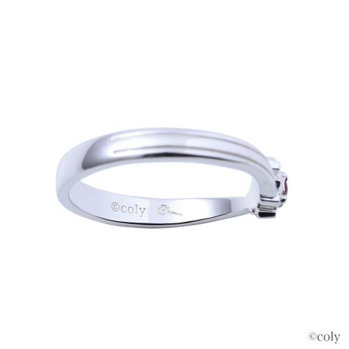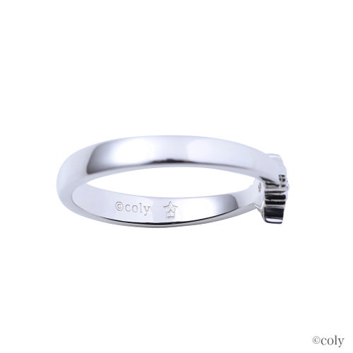 スカーフ留めをモチーフとしてリングに取り込んだストレートタイプのデザインに、イメージカラーストーンをセット。内側には魔道具のアイコンを刻印しました。繊細に表現したブローチが魅力的なデザインです。