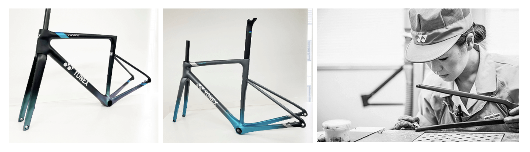「TRACE」は、ヨネックスロードバイクの特長である「軽さ」と「しなり」に加え、「空力性能」を追求したフレームを採用。