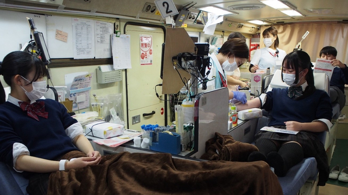 本校では、生徒が献血の現状を理解し、初回献血のきっかけとなるよう、生徒会が中心となって献血活動に取り組んでいます。生徒らはこの活動を通じて命を救う献血の大切さを学び、社会貢献の第一歩を踏み出します。
