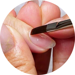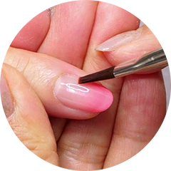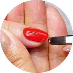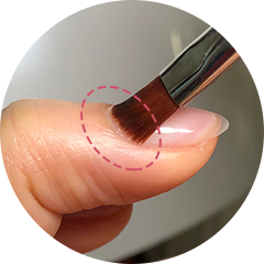 <OMD>ジェルブラシは、穂先が薄くキューティクル際まで攻めることができます!