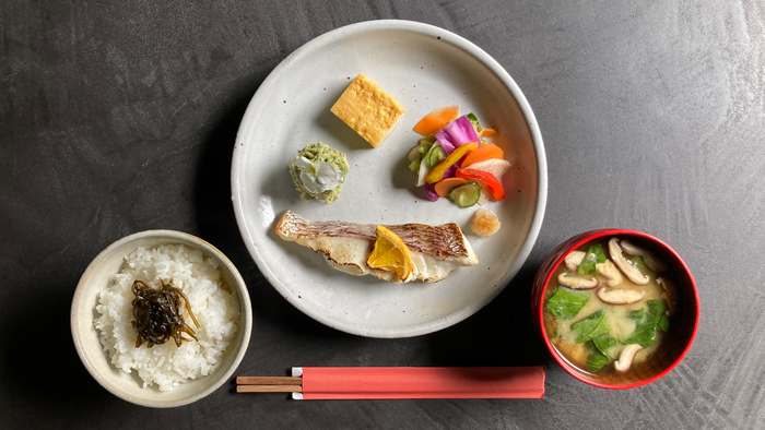 素材はどれも国産品を使用し素材の旨味を存分にお楽しみ頂けます。地産地消を意識し、旬の鮮魚や野菜を使ったメインの「一汁三菜」は爽やかな一日を始めるにぴったりな日本の献立。朝食で提供する魚はオーブンを使った西京焼き、塩焼き、昆布締めなど仕入れる魚によって変え、その時々によってベストな食材をご提供させて頂きます。