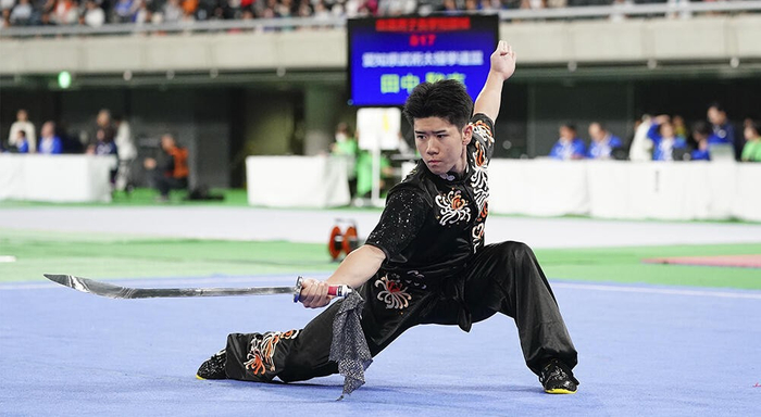 小学生から始めた武術太極拳。これまでにジュニアオリンピックカップをはじめ、数々の大会での入賞経験を持つ田中さんは、国内でもトップクラスの選手。