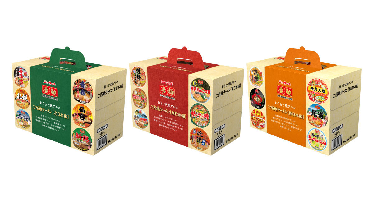 凄麺の「仙台辛味噌ラーメン」「横浜とんこつ家」「京都背脂醤油味」の味をイメージした3種類を用意しました。