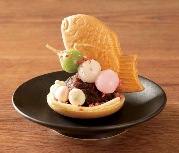 風味の高いあんこの甘みと、濃厚さの中に塩味が効いたバターの口溶け感、さらに三色団子の華やかさと可愛いお麩の食感が合わさり、目にも口にも楽しく、お目出鯛(めでたい)もなかが完成しました。