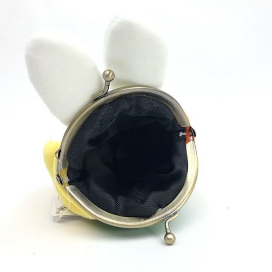反対側を向けると、がま口が現れ、コインケースだと分かります。裏側もふわふわ素材で、グリーン&オレンジ&イエローの定番カラーもキュートです