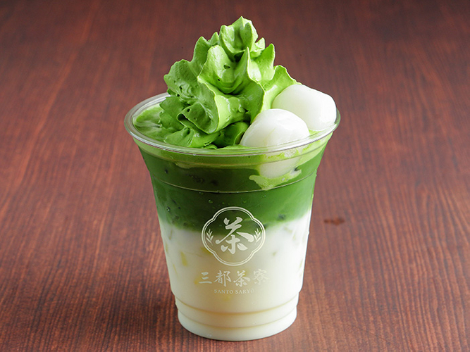 「お濃い 抹茶ラテ」に、エスプーマと白玉をトッピングした新感覚のデザートドリンク。エスプーマとは、特殊な機器できめ細かに仕上げた泡で、軽い口当たりが特徴です。三都茶寮で使用するエスプーマは、お茶の旨味と香り、コクを引き出すための独自配合で仕上げています。お好みの量を「お濃い 抹茶ラテ」に混ぜ合わせてお楽しみください。