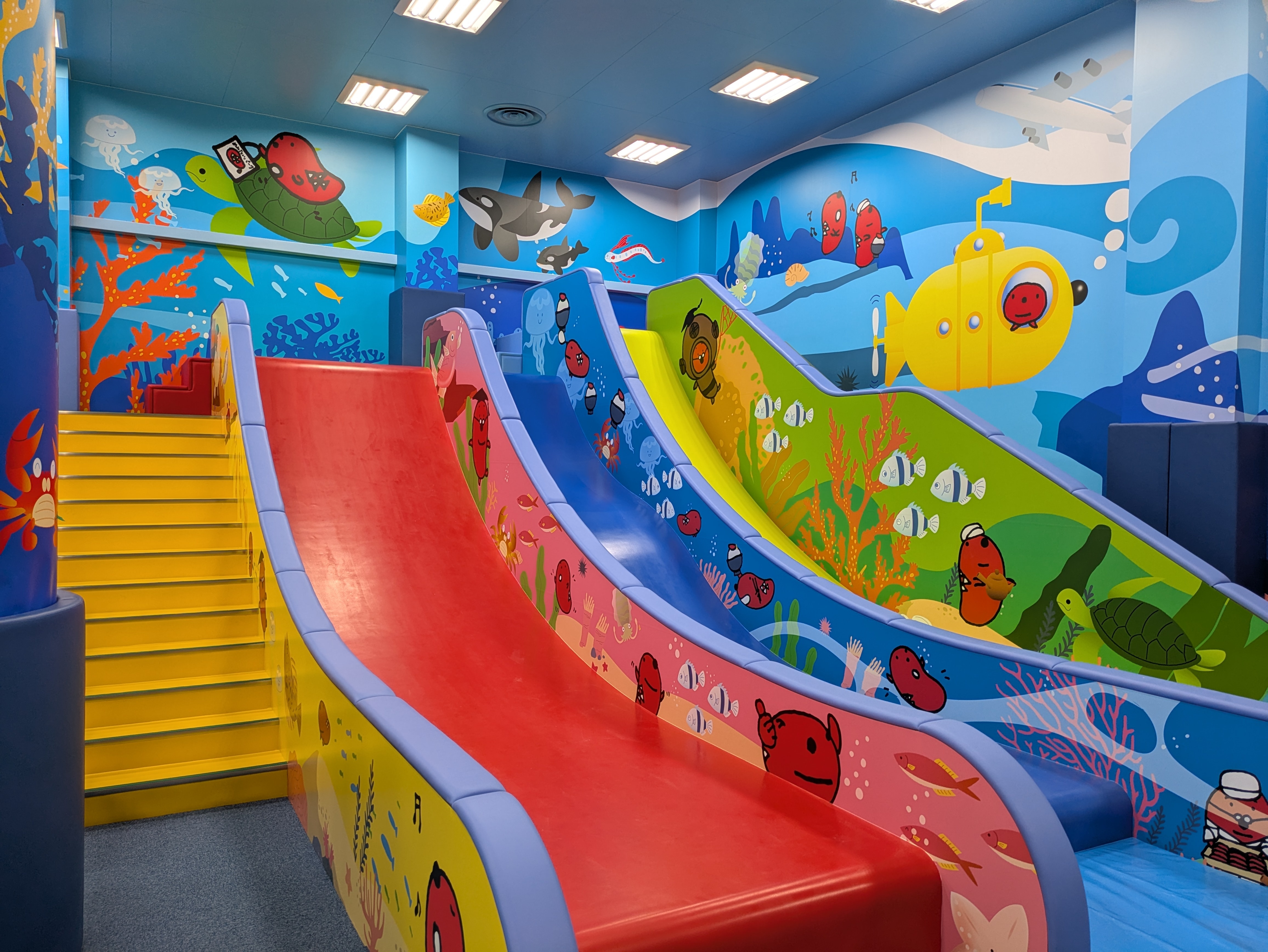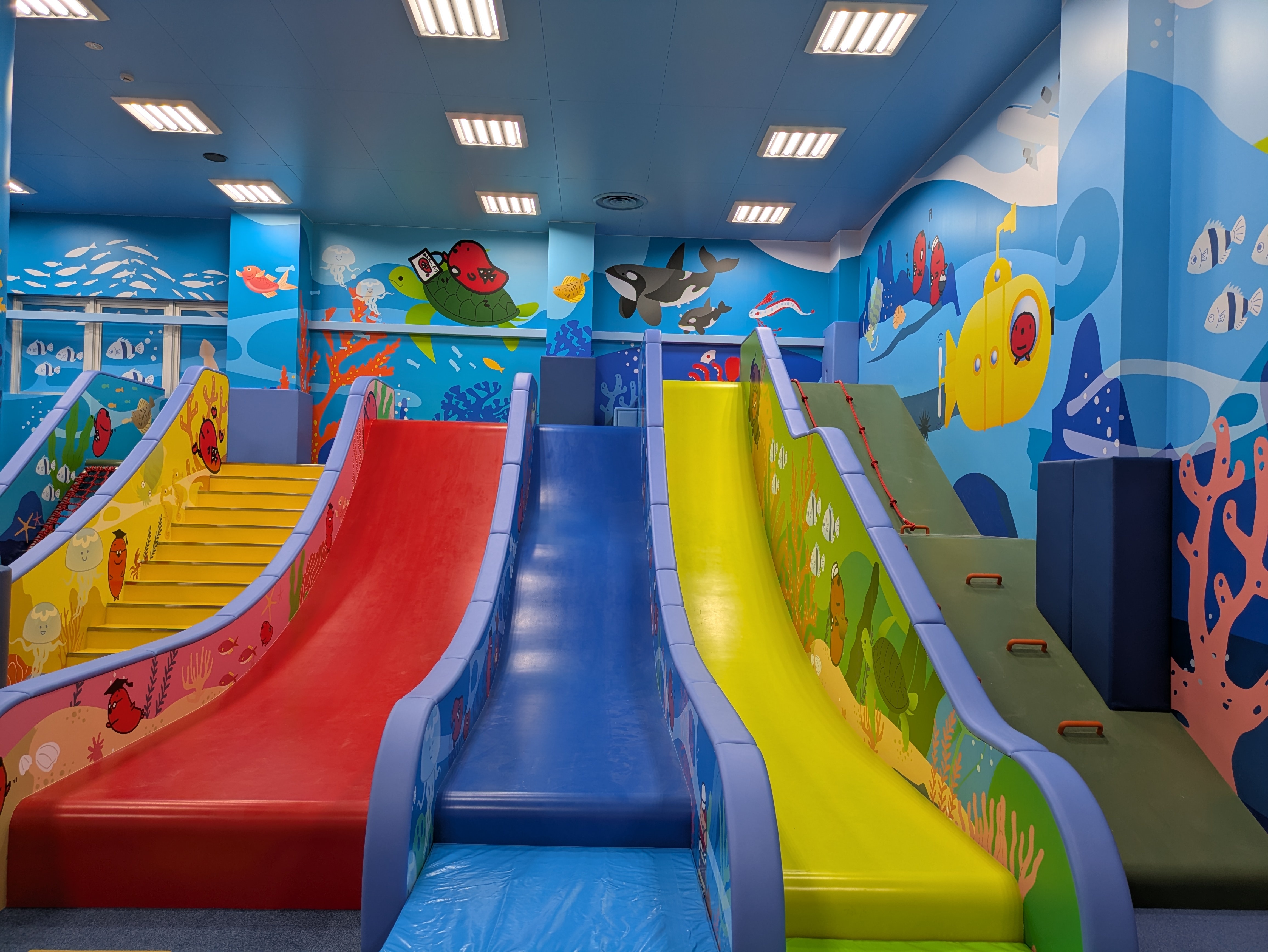キッズスペースでは、お子様がのびのびと遊べるよう遊具人気No.1の3連ジャンボすべり台や子供向けのボルダリングなどの遊具を導入。明るくカラフルな空間で、お子様の笑顔あふれるひとときを演出します。また記念写真を撮るフォトスポットなど盛りだくさんで、大人から子供まで楽しめます。