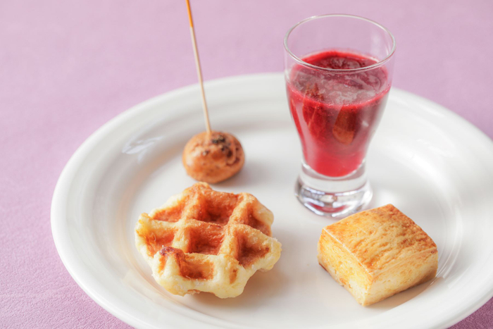 ・セイボリー:シェフ特製3種のセイボリー(シーフードマリネ/ポテトサラダ/ベーコンのキッシュ)