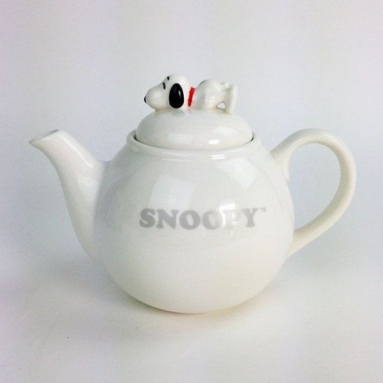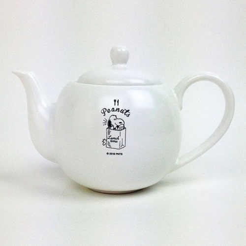 まず紹介するのが、こちらのティーポットです。白を基調としたシンプルなデザインのおかげで、中央上部にいるスヌーピーがとっても引き立ちますよね。食器棚に置いてあるだけでテンションが上がりそうなティーポットです。