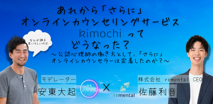 そこで、日本公認心理師ネットワークでは、オンラインカウンセリング『Kimochi』を運営されている佐藤利音さん(株式会社remental CEO)を2024年9月にお呼びして、オンラインカウンセリングの実際と働き方についてのオンラインイベントを行いました。