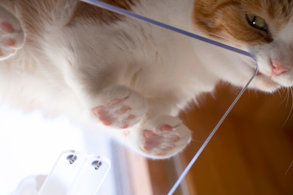 透明感と無駄のない形状で窓への取付けた時に圧迫感がありません。天板が透明だから猫ちゃんのムッチリおなかと肉球が下から見えて愛猫の新たな可愛い一面の発見にもつながります。