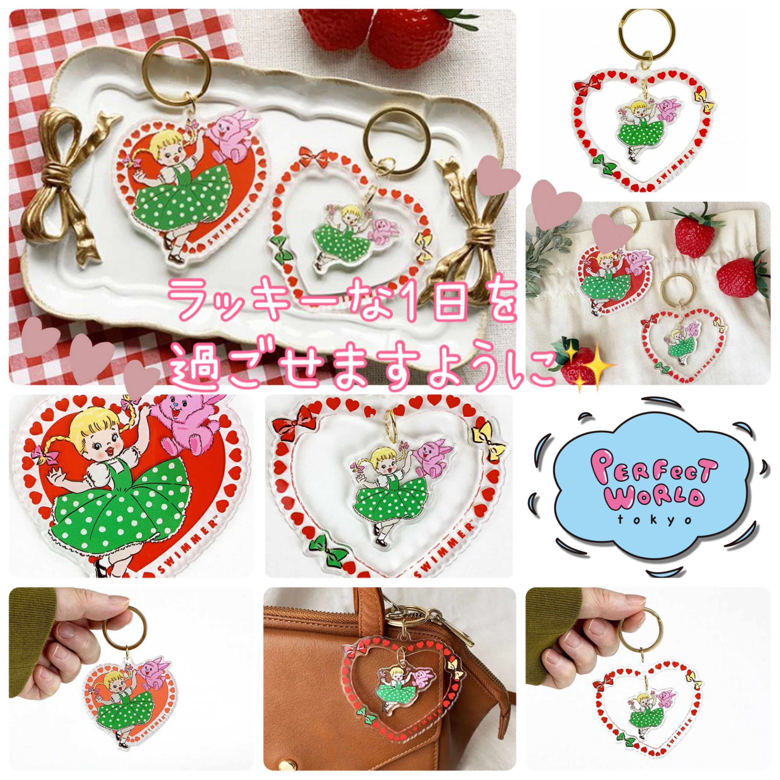 かわいい , グッズ , 新着 , パーフェクトワールド ,パーフェクトワールドトーキョー , ヒットアイテム , キャラクターグッズ,SWIMMER,スイマー,先行発売,オリジナル,アクリルチャーム,キーホルダー,ハート,うさぎ,リボン
