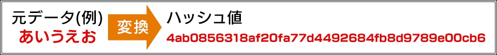 ハッシュ値とは簡単に言うと、元データを別の不規則な文字列に変換したものです。