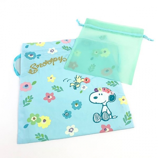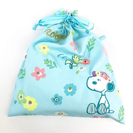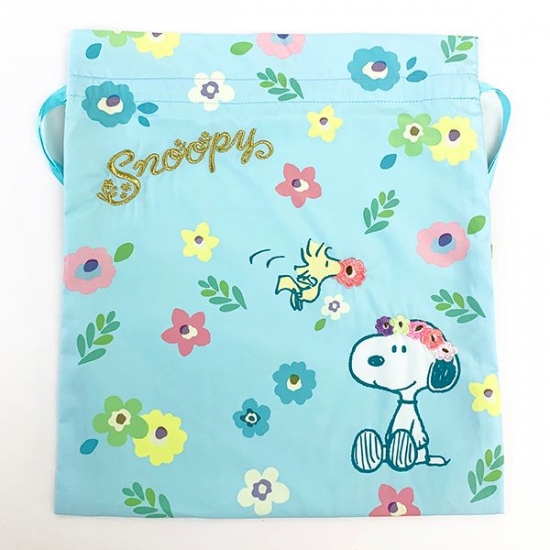 お花に囲まれたスヌーピーに癒やされるデザイン♡カラフルな花かんむりの刺繍もポイントです。
