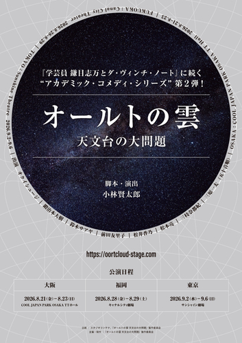 劇作家、小林賢太郎の新作オリジナル舞台『オールトの雲 天文台の大問題』を2026年8月〜9月に、大阪、福岡、東京にて上演することが決定いたしました。