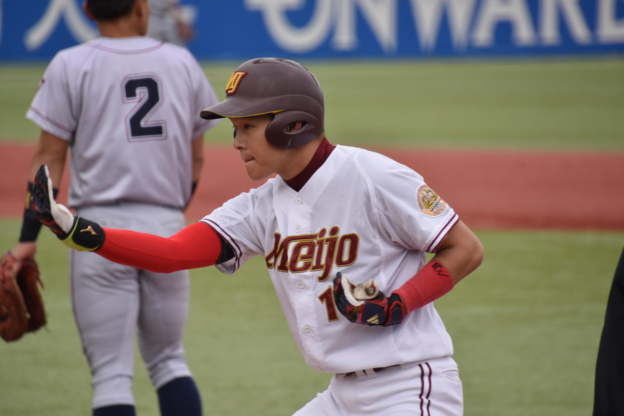 劇的なサヨナラ勝ちで初戦を突破した本学硬式野球部。その勢いをつなげたいところでしたが、相手投手を打ちあぐね、3回表に2死2塁、4回表にも山蔭一颯主将(法学部4年)の右前打から2死2塁のチャンスを作りますが、いずれもあと1本が出ず、無得点に終わると、4回裏に立命館大学に1点を先制されます。