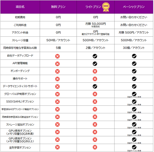 ✅ 拡張もスムーズ:本格的なAI活用が必要になった際には、より高度なプランへスムーズに移行可能。