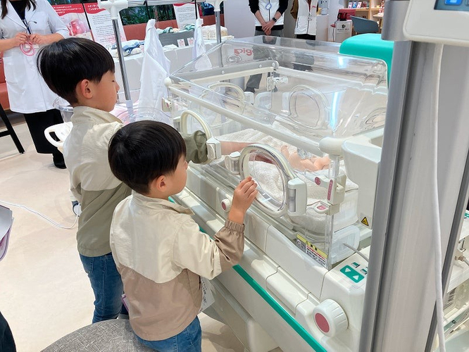 ●展示・体験エリアでは、早産で生まれた赤ちゃん人形抱っこ体験、保育器でのお世話体験などを通じ、早産児とそのご家族について知り、考えるきっかけを提供しました。