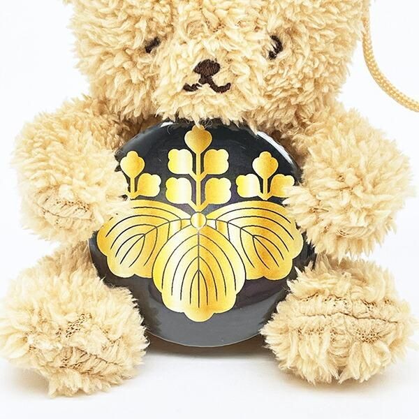 家紋を大事に抱えるベア本体はふわっとやわらかで愛らしく、猛々しい武将の家紋や厳格な皇室の菊紋を抱える姿はまさにギャップ萌えです。