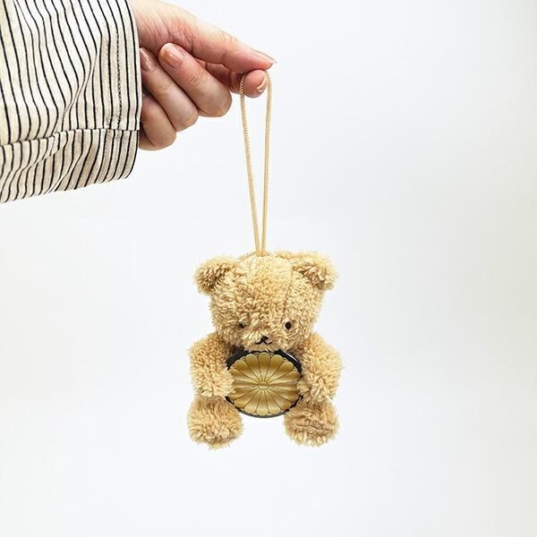 菊紋は正式には【十六葉八重表菊】と呼ぶそうです。この格式高い紋を抱えるベアからは、品格を高めて尊い存在を大切にしたいと願うあなたのための「尊貴なお守り」として、日常に静かな力が与えられそう。