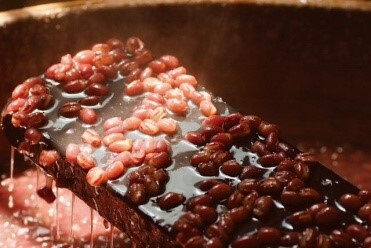 小豆はきんつば作りのために選んだ大粒を、北海道十勝の契約農家さんから仕入れた、香り高さが特徴の品種「襟裳小豆(えりもしょうず)」のみを使用しています。皮が潰れずにパンパンに膨れるところまで丁寧に炊き上げます。小豆の粒はつやつやと輝き、小豆本来の上品な味わいに仕上がります。