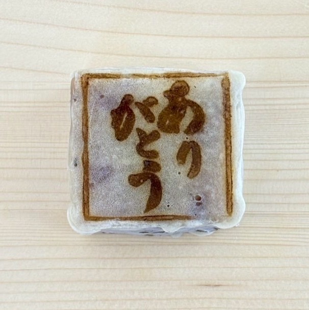新作の「ミルクティーとクランベリーのきんつば」6個、又一庵の代名詞の小豆きんつば6個の全部で12個のきんつば焼きを行い、「ありがとう」の焼印を押し、袋に入れて包装する体験となります。