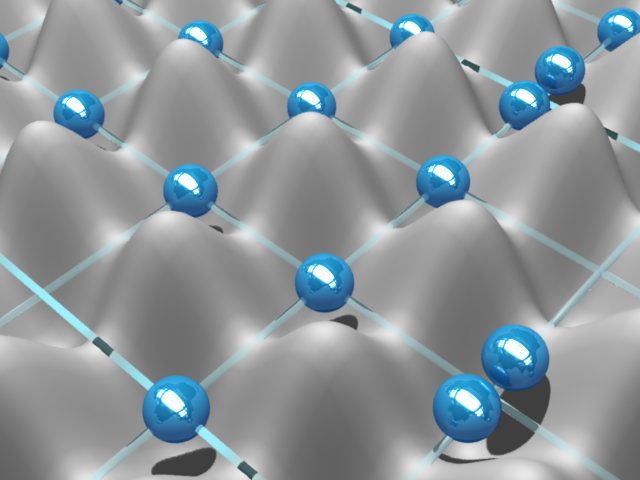 光格子中に、局在したボース原子に対し、光格子を急激に下げて原子を自由に飛び回れるようにし、そこからの系の応答を実験的に研究しました。初期状態は、1サイトに1つの原子がありますが、原子は自由に飛び回れるようになると、1つのサイトに2つの原子がある状態と、原子がない状態が生まれます。