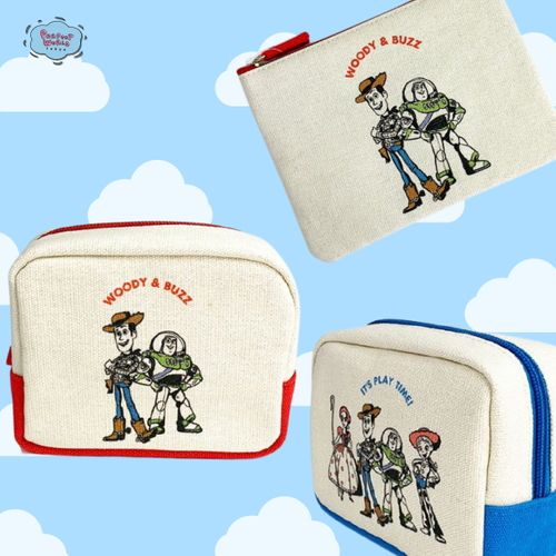スクエア型のポーチが、ウッディ&バズの最強コンビのイラストで登場です。キャンバス地のナチュラル感に加えて、サイドと底部分の赤い配色が効いたデザイン♪ウッディーとバズの決めポーズもカッコいいですよね。