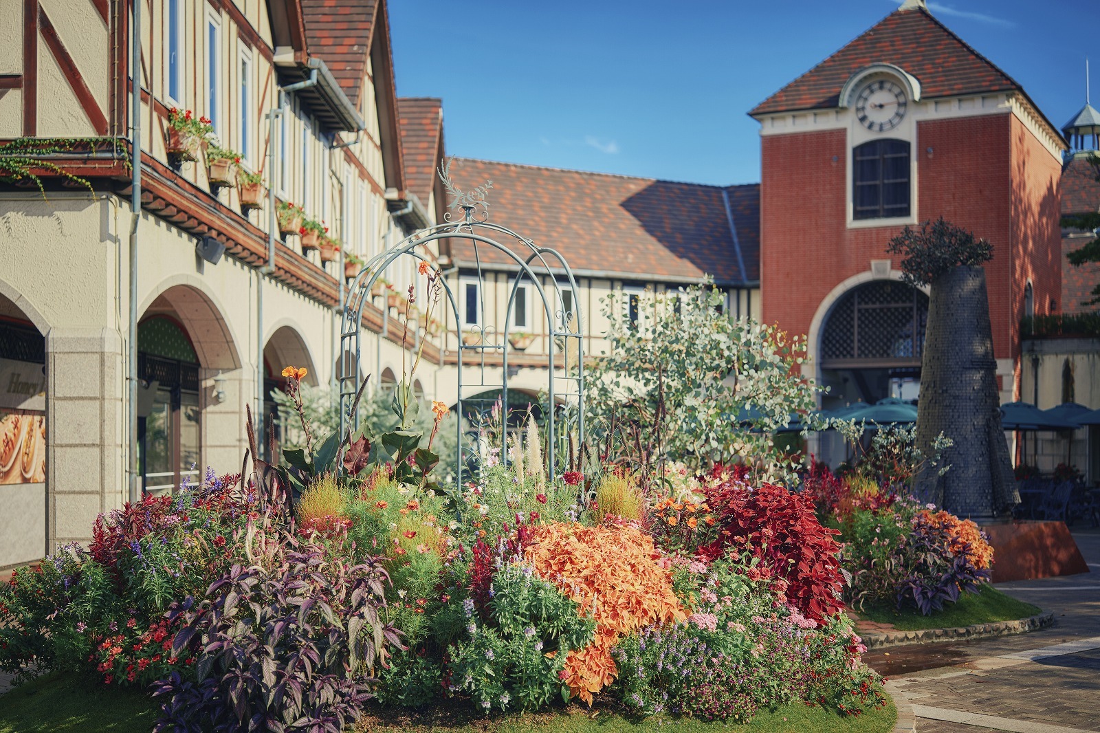 お散歩にぴったりの季節。ガーデンは、色鮮やかなハーブや花々で彩られます。各ガーデンには、この時季ならではのハロウィンディスプレイも登場します