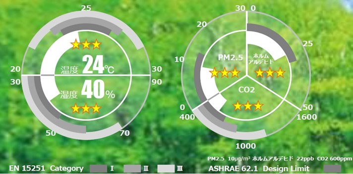 店舗の入り口には、IAQセンサーにより計測した温度や湿度、CO2濃度といった情報をリアルタイムに反映する「IAQモニター」を設置しており、店舗内が快適な空間であることをいつでも確認できます。